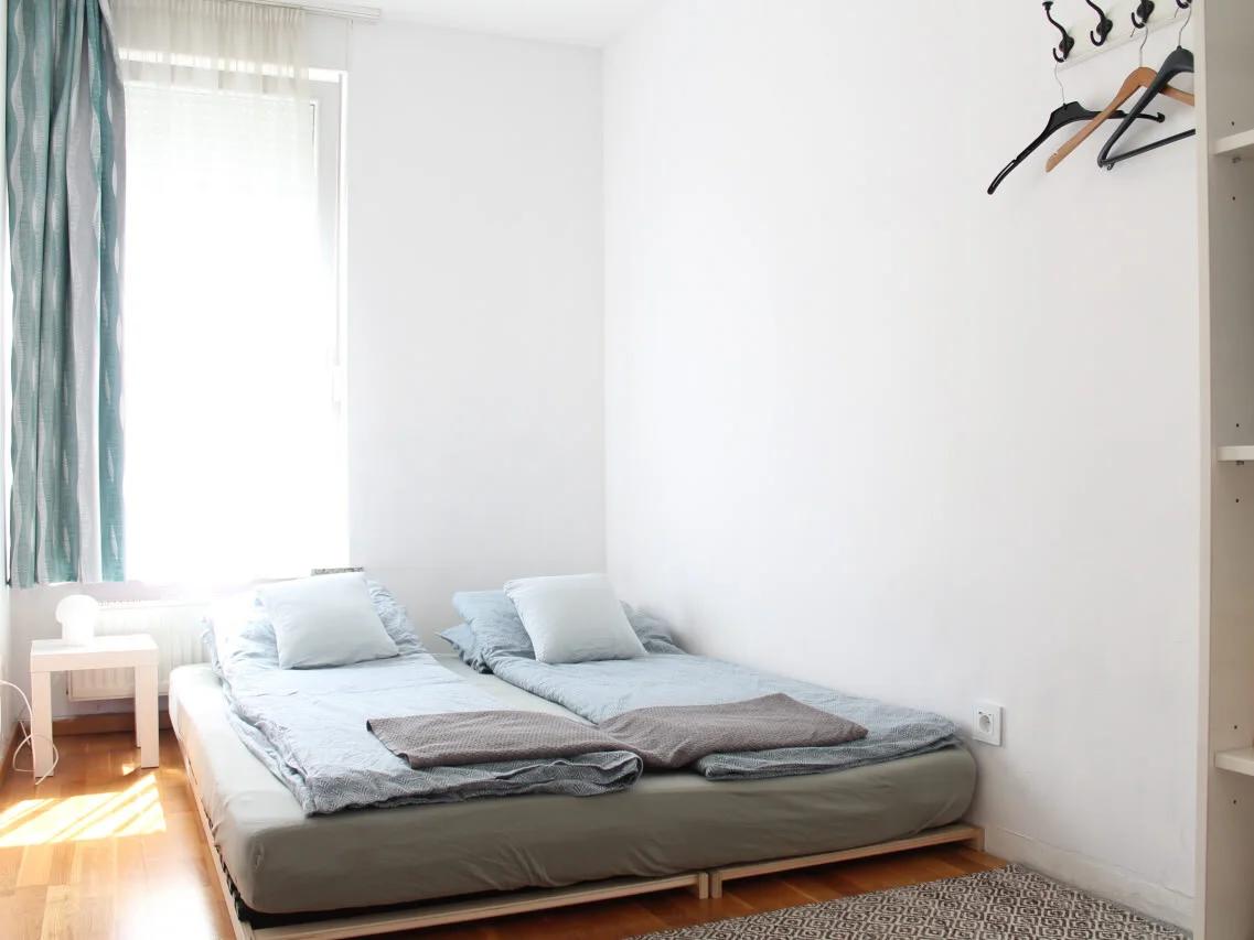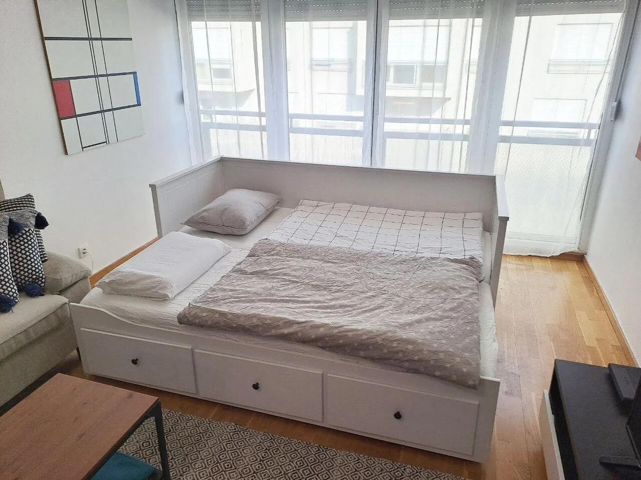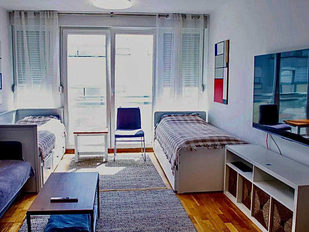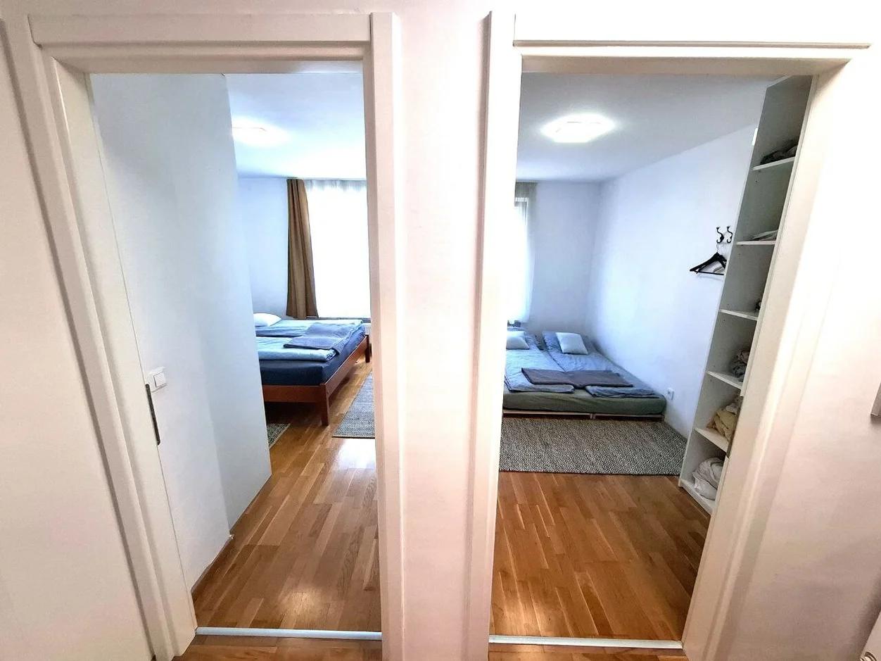 This air-conditioned apartment features two bedrooms, a fully equipped kitchen in the same room as the dining room and living room. The bathroom is equipped with a shower and a washing machine. A flat-screen TV and free WiFi are available. Private parking is available on site.The center is 5.5 km from the building. The Technical Museum landmark is 5.9 km away and the Arena Center is 7 km from the facility.